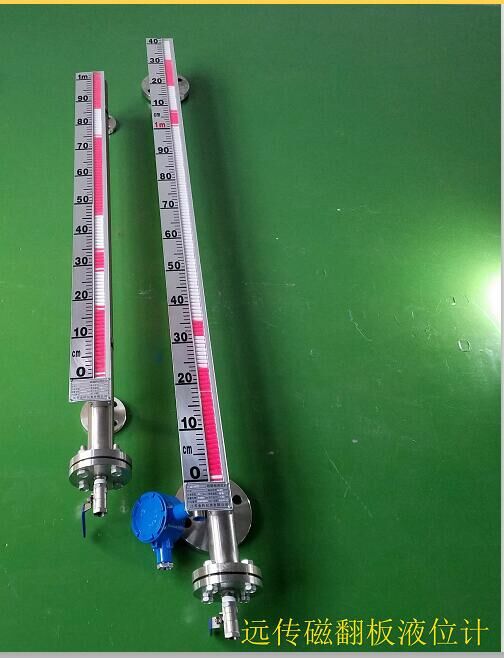 磁翻板液位計(jì)工作原理是基于磁耦合的物理特性,測量主體金屬內(nèi)腔管外的翻板箱受主體內(nèi)浮子(具有定向磁性源,按不同介質(zhì)和壓力針對研制)的作用促其翻板翻動(dòng)并顯示紅白顏色,并隨浮子的移動(dòng)指示不同的液面高度。在指示器左側(cè)配有醒目的刻度標(biāo)尺,從而使液位的指示顯得更加清晰。SUB-UHZ磁翻板液位計(jì)由本體、翻板箱(由紅、白雙色磁性小翻板組成)、浮子、法蘭蓋等組成,用于各類液體容器的液位測量。