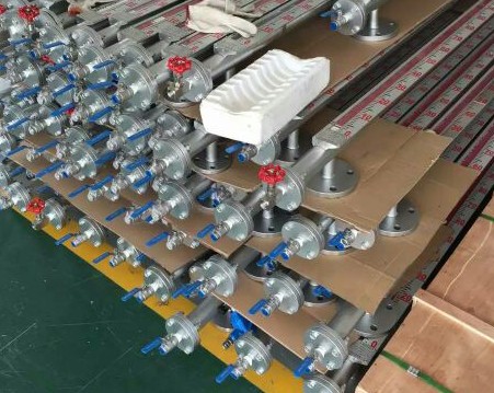 5、因運(yùn)輸過(guò)程中為了不使浮球組件損壞,故出廠前將浮球組件取出液位計(jì)主體管外,待液位計(jì)安裝完畢后,打開底部排污法蘭,再將浮球組件重新裝入主體管內(nèi),注意浮球組件重的一頭朝上,不能倒裝。如果在出廠時(shí)已經(jīng)將浮球組件安裝在主體管內(nèi),為保證運(yùn)輸過(guò)程中不使浮球組件損壞,我們用軟卡將浮球組件固定在主體管內(nèi),安裝時(shí)只要將軟卡抽出即可。