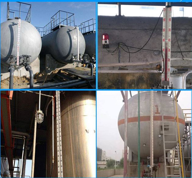 磁翻板液位計由本體、翻板箱(由紅、白雙色磁性小翻板組成)、浮子、法蘭蓋等組成,用于各類液體容器的液位測量。磁翻板液位計能用于高溫、防爆、防腐、食品飲料等場合、作液位的就地顯示或遠傳顯示與控制。UHZ系列磁翻板液位計可以做到高密封、防泄漏和在高溫、高壓、高粘度、強腐蝕性條件下安全可靠地測量液位,全過程測量無盲區(qū)、顯示醒目,讀數(shù)直觀,并且測量范圍大,配上液位報警、控制開關(guān),可實現(xiàn)液位或界位的上下限報警和控制,配上液位變送器可將液位。界位信號轉(zhuǎn)換成二線制4~20mADC的標(biāo)準(zhǔn)信號,實現(xiàn)遠距離檢測、指示、記錄與控制。 UHZ系列磁翻板液位計廣泛用于電力、石油、化工、冶金、環(huán)保、船舶、建筑、食品等行業(yè)生產(chǎn)過程中的液位測量與控制。