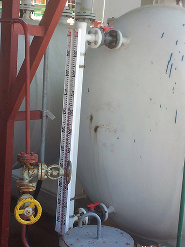 l、側(cè)裝式液位計與被測容器的上下分液管間*好各裝一只截止閥門以便打開或關(guān)閉液位計;另一方面為維修液位計帶來方便。在上下截止閥關(guān)閉時可打開液位計底部排污法蘭或卸下排污螺釘,注入清水即可清洗液位計的主體。