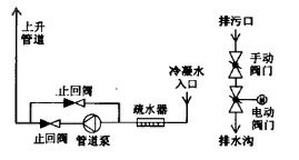 5.1如上圖所示,在原上升管道與疏水器之間增加兩條回路,其中主路由止回閥、管道泵組成。管道泵與換熱器的三暢磁翻板液位計(jì)連鎖,根據(jù)現(xiàn)場(chǎng)具體運(yùn)行情況設(shè)置高、低液位管道泵自動(dòng)啟停,磁翻板液位計(jì)的數(shù)值上傳至廠區(qū)指揮中心,實(shí)時(shí)遠(yuǎn)程監(jiān)控,同時(shí)增設(shè)管道泵的緊急停止按鈕。旁路僅設(shè)置止回閥。在正常情況下,凝結(jié)水可以通過(guò)旁路的止回閥順利地回收到凝結(jié)水回收裝置中;在非正常情況下,則可以憑借管道泵加壓后,順利回收。