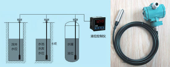 若設(shè)所測(cè)液體密度為P,液位高度為h,大氣壓為Po,重力加速度為g,則液體所受壓力P=pgh + p}。這時(shí),為抵消大氣壓力變化所帶來的測(cè)量誤差,傳感器變送器部分采用導(dǎo)氣電纜將大氣壓力P。引入敏感兒件的負(fù)壓腔,進(jìn)而使P = Pgh。顯然,若已知液體密度,通過測(cè)取壓力P就可換算出相應(yīng)的液位高度。