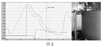 圖3為安裝在濃硫酸槽(高度1.2m)上的雷達液位計的回波包絡(luò)線圖。由于液位計距離罐壁太近而且儲槽本身較小,導(dǎo)致液位計報警:E641失波。