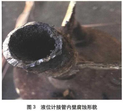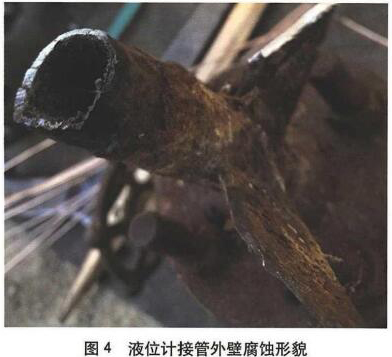 分離罐液位計接管先于罐體腐蝕泄漏失效是由于管壁較薄加之外表面防腐保溫不完整導(dǎo)致雨水侵人常年腐蝕所致。對此應(yīng)引起設(shè)計、制造、使用及檢驗等相關(guān)各方為戒。