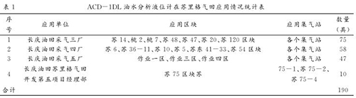 在試驗(yàn)成功的基礎(chǔ)上,蘇里格氣田對(duì) ACD-1DL 油水分析液位計(jì)進(jìn)行了全面推廣,截止到 2014年 11 月底,共在 87 座集氣站應(yīng)用 190 臺(tái),各單位應(yīng)用情況統(tǒng)計(jì)見表 1 。