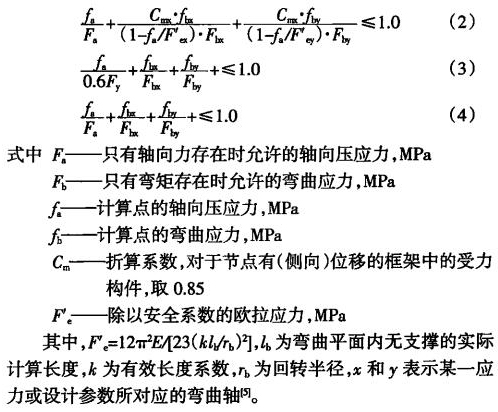 (2)UC值是美國(guó)ANSI/AISC《鋼結(jié)構(gòu)設(shè)計(jì)手冊(cè)》針對(duì)鋼結(jié)構(gòu)物體承受壓縮彎曲等多種組合載荷聯(lián)合作用時(shí)所采用的綜合機(jī)械強(qiáng)度性能的度量指標(biāo)。