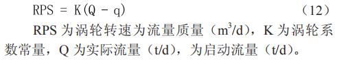 ①吸汽量。計算射孔層位吸汽量,可以通過六參數(shù)循環(huán)水液位計的渦輪流量計實(shí)現(xiàn)。忽略低流速時渦輪的非線性響應(yīng)及密度對渦輪轉(zhuǎn)速的影響,則渦輪轉(zhuǎn)速 RPS 與流速成正比 :