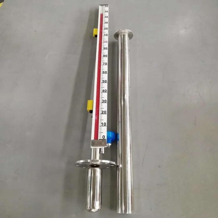 原理:根據(jù)浮力原理和磁性耦合原理而制成的,當(dāng)被測(cè)容器內(nèi)的液位上下變化時(shí)帶動(dòng)浮球,并通過與之相連的連桿上端的永久磁鋼上下移動(dòng),經(jīng)磁性藕合而使顯示器中的翻柱翻轉(zhuǎn)。當(dāng)液位上升,翻柱由白色轉(zhuǎn)為紅色,當(dāng)液位下降時(shí)翻柱由紅色轉(zhuǎn)為白色,紅白界位處就為容器內(nèi)介質(zhì)液位的實(shí)際高度,從而實(shí)現(xiàn)液位自動(dòng)跟蹤顯示。