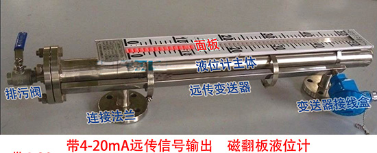 防凍液液位計主體外的翻板箱受主體內(nèi)浮子(具有定向磁性源,按不同介質(zhì)和壓力針對研制)的作用促其翻板翻動并顯示紅白顏色,并隨浮子的移動指示不同的液面高度。在指示器左側(cè)配有醒目的刻度標(biāo)尺,從而使液位的指示顯得更加清晰。那么,防凍液液位計帶遠傳又是如果實現(xiàn)信號遠傳輸出的呢?