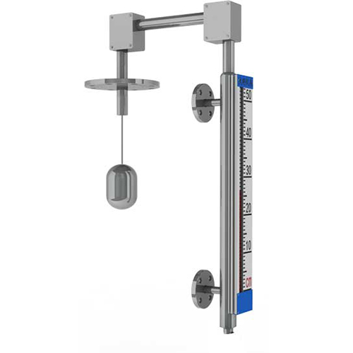 在液位計管體的另一側(cè)可按用戶需要加裝電遠傳變送器,將液位高度轉(zhuǎn)換成標準電流信號輸出,以供液位信號輸出,以供液位信號遠傳至二次儀表進行指示控制與檢測。