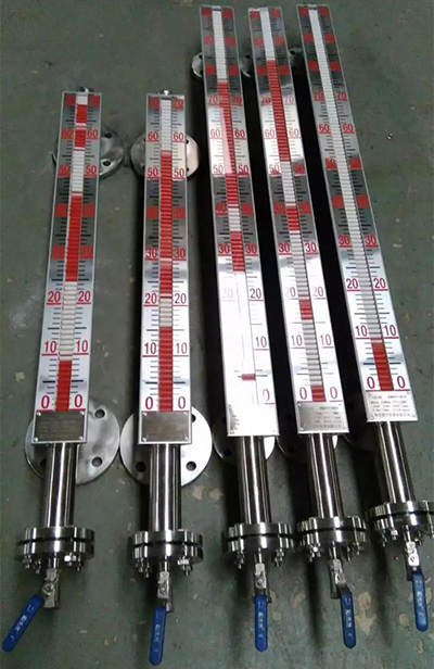 4、磁翻板液位計投入運行時應先打開下引液管閥門讓液體介質(zhì)平穩(wěn)進入主體管,避免液體介質(zhì)帶著浮球組件急速上升,而造成翻柱轉(zhuǎn)失靈和亂翻。若發(fā)生此現(xiàn)象待液面平穩(wěn)后可用磁鋼重新校正。